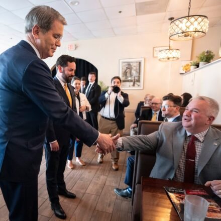 El secretario del Tesoro de Trump visita un diner en Nueva York y minimiza el aumento de precios de gasolina.