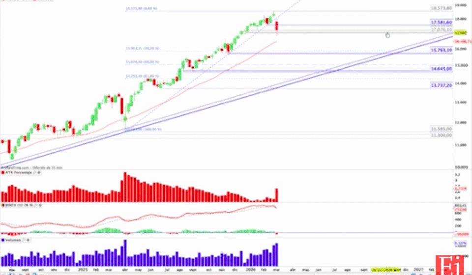 Si se produce un cierre por debajo de 17.076 puntos, los siguientes objetivos de corrección se situarían en torno a los 15.763 y 15.724 puntos. Esto implicaría descensos adicionales del 7,69% y del 7,91% en el corto plazo, lo que podría generar un mayor nerviosismo entre los inversores.